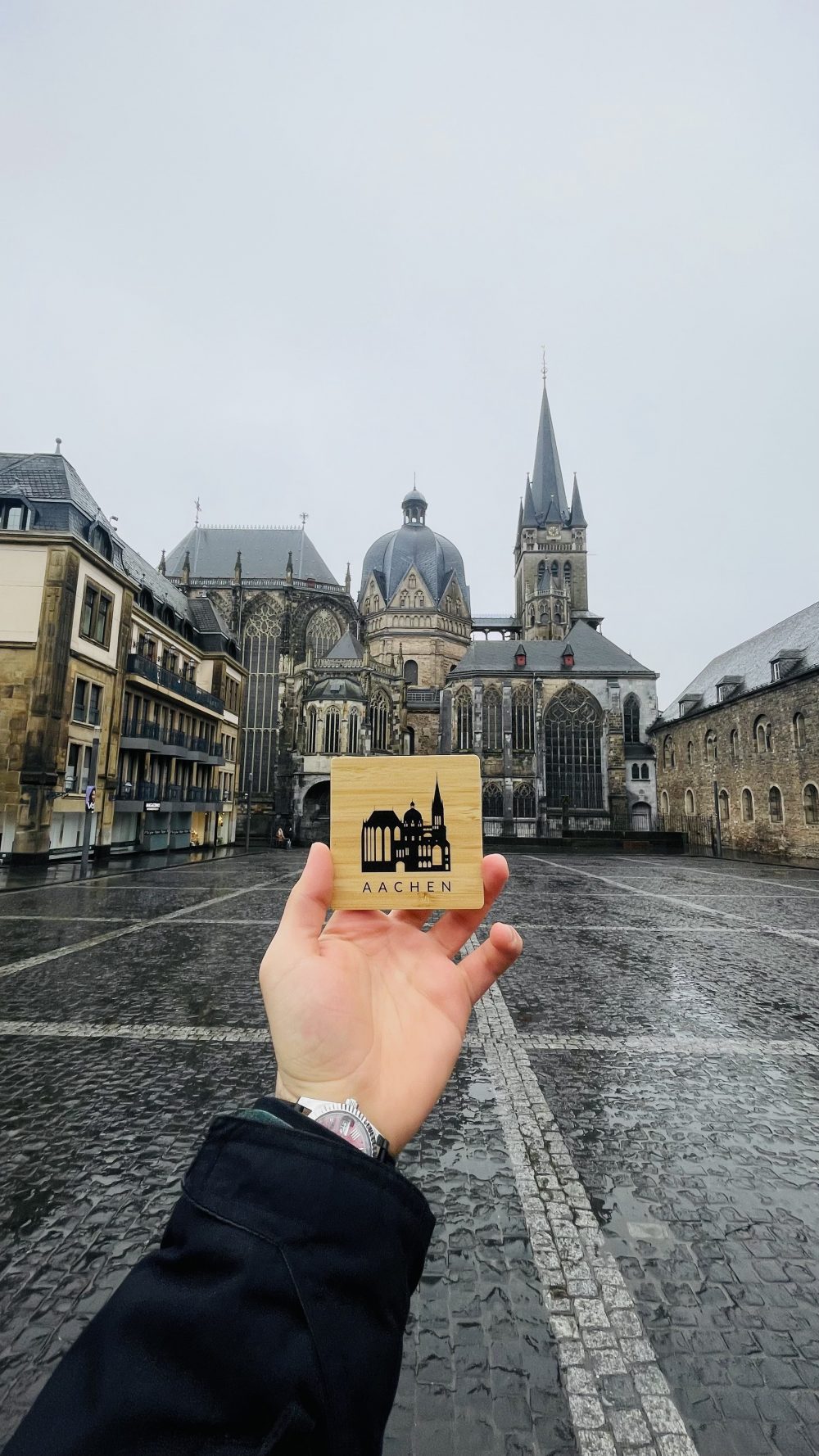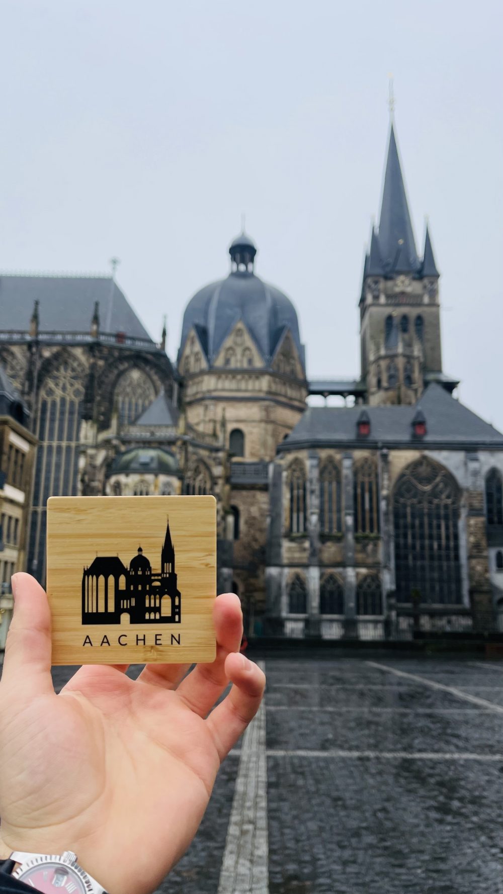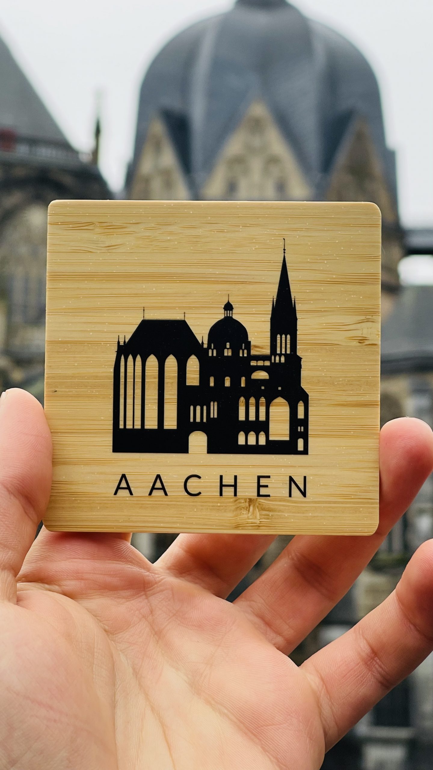 This beautifully crafted bamboo coaster features a minimalist silhouette of the iconic Aachen Cathedral, a UNESCO World Heritage site celebrated for its architectural and historical significance. Expertly laser-engraved on sustainable bamboo, this coaster combines functionality with a sophisticated aesthetic, making it an ideal coaster to any home or office.