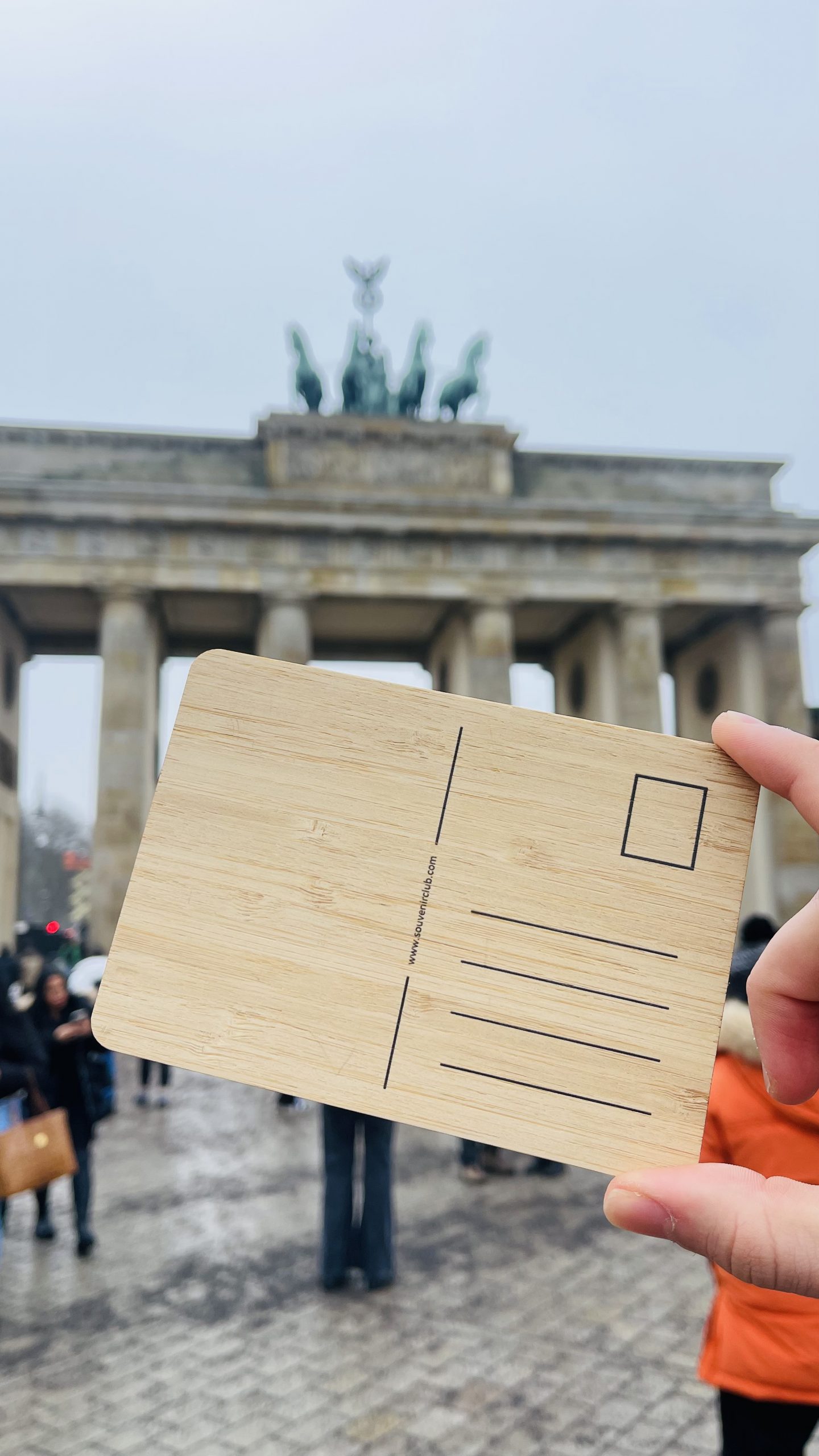 Feiern Sie den Charme Berlins mit dieser wunderschön illustrierten Bambus-Postkarte mit einer farbenfrohen Skizze der bekanntesten Wahrzeichen der Stadt. Das Design vereint den majestätischen Berliner Dom, den hoch aufragenden Fernsehturm und das historische Brandenburger Tor in einem modernen, künstlerischen Stil, der Berlins kreative und lebendige Atmosphäre einfängt. Gefertigt aus natürlichem, umweltfreundlichem Bambus mit lebendigen gravierten Akzenten ist diese Postkarte sowohl ein einzigartiges Souvenir als auch eine nachhaltige Erinnerung an Ihre Reise – perfekt für Reisende und Liebhaber von Deutschlands dynamischer Hauptstadt.