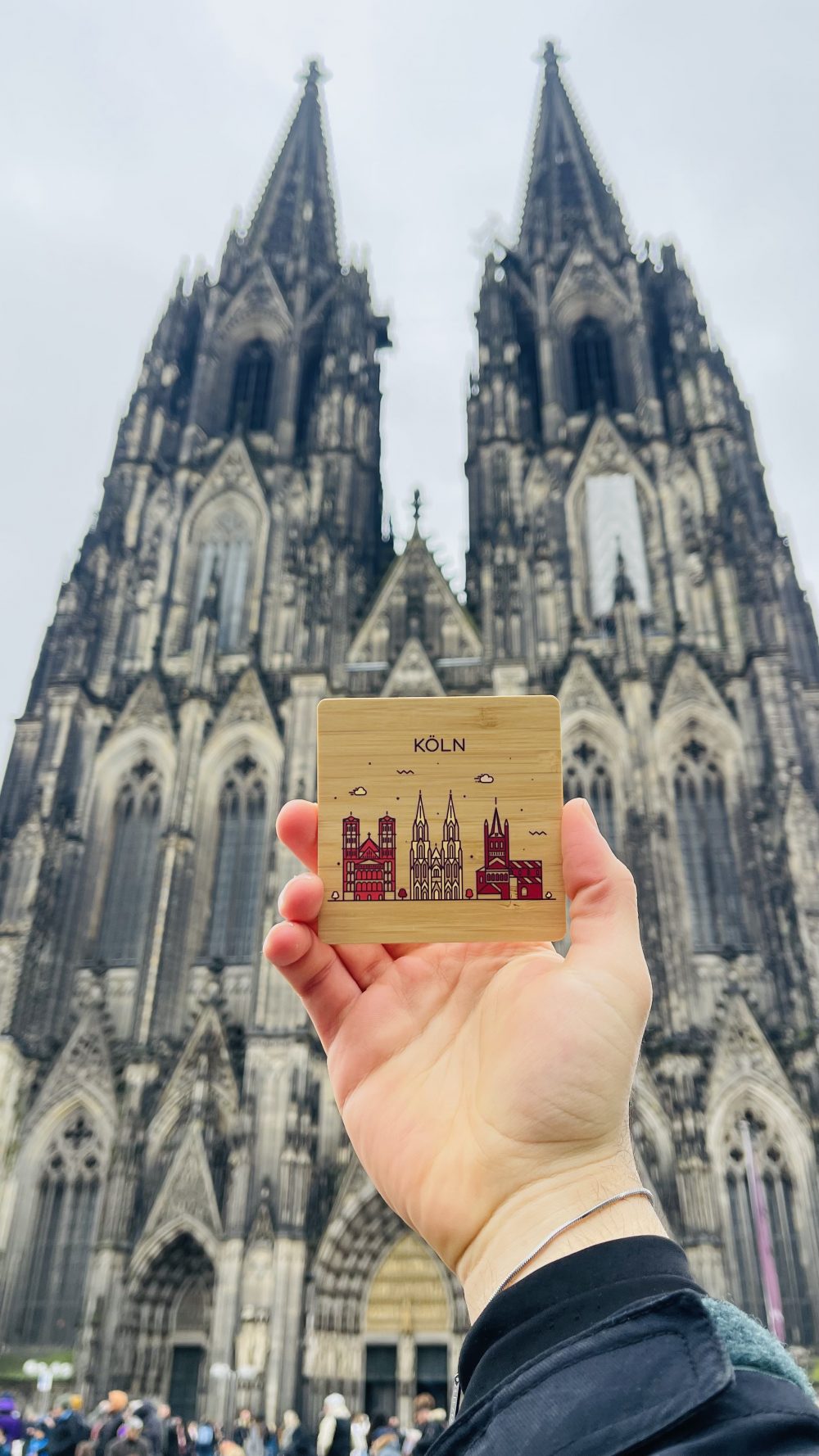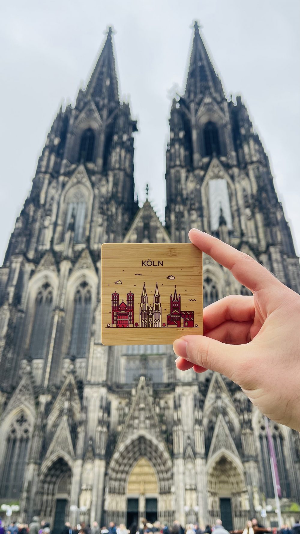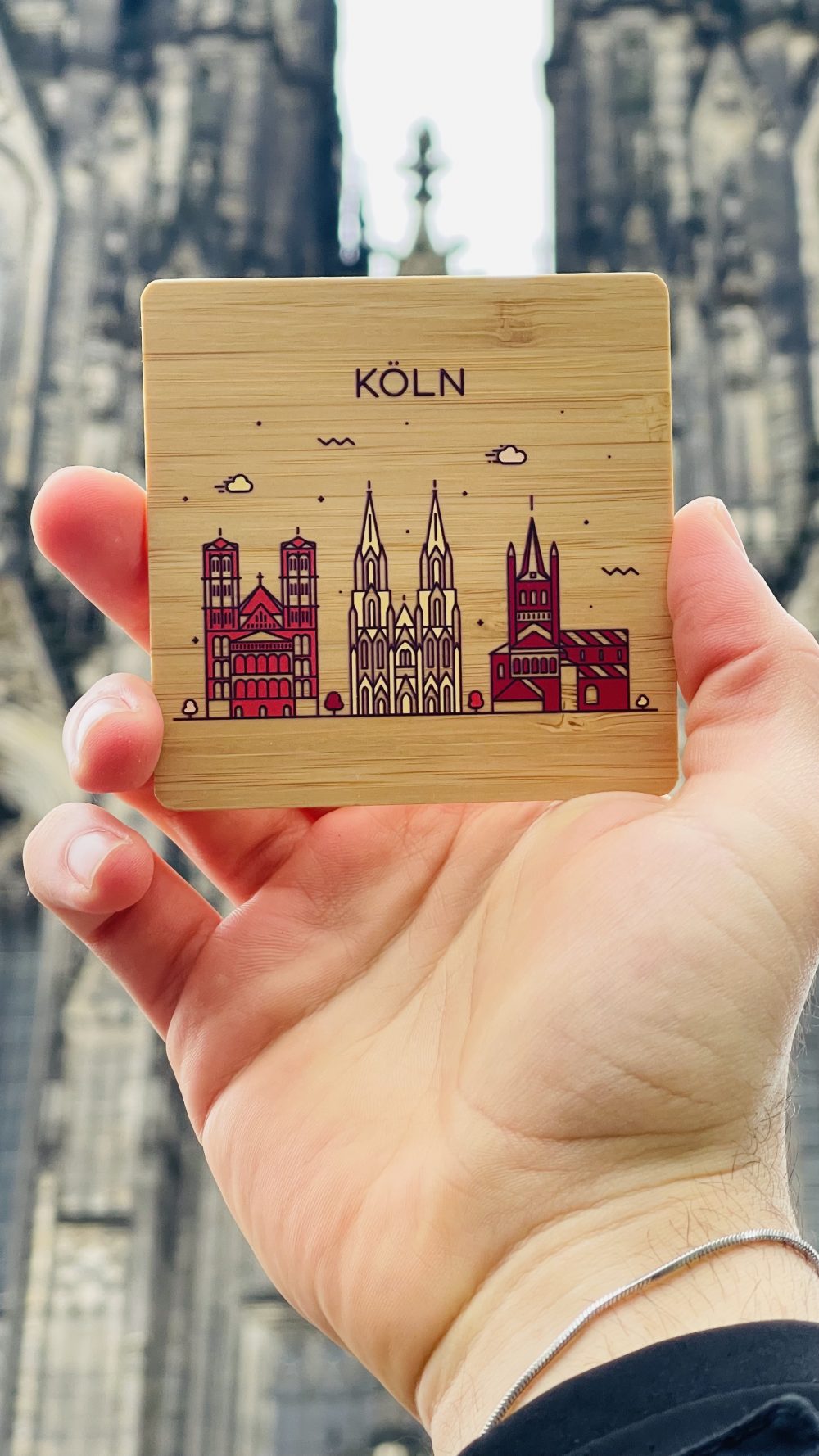 This beautifully designed bamboo coaster showcases Cologne’s iconic skyline, featuring landmarks such as the Cologne Cathedral, Great St. Martin Church, and the historic Cologne Town Hall. Crafted from sustainable bamboo with a vibrant, precision-printed design, this coaster brings a touch of Cologne’s charm to your home while protecting your surfaces in style.