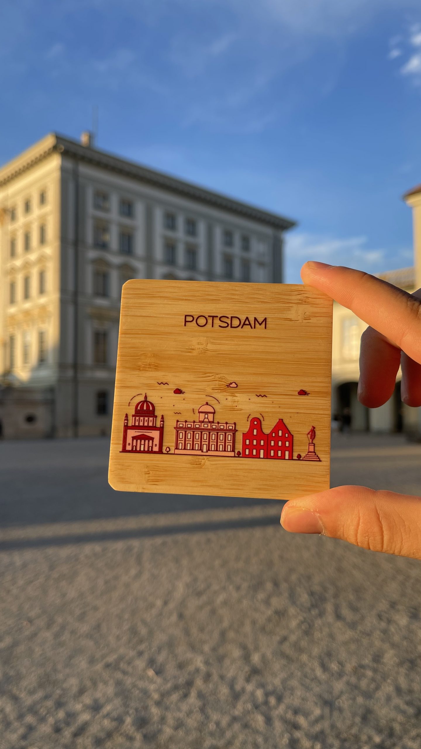 Feiern Sie den Charme Potsdams mit diesem Bambusuntersetzer, der eine elegant gravierte Skyline der beliebtesten Wahrzeichen der Stadt zeigt. Hergestellt aus nachhaltigem Bambus verbindet dieser umweltfreundliche Untersetzer Praktikabilität mit Kunstfertigkeit und bietet eine schöne Möglichkeit, Ihre Oberflächen zu schützen, während er gleichzeitig ein Stück von Potsdams reicher Geschichte und architektonischer Schönheit in Ihr Zuhause bringt.